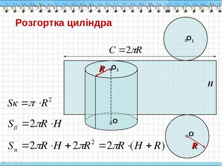 Бічна поверхня циліндра виглядає як прямокутник якщо її розгорнути і тому коли циліндр розрізають і розкладають то можна побачити звичайний прямокутник який легко виміряти